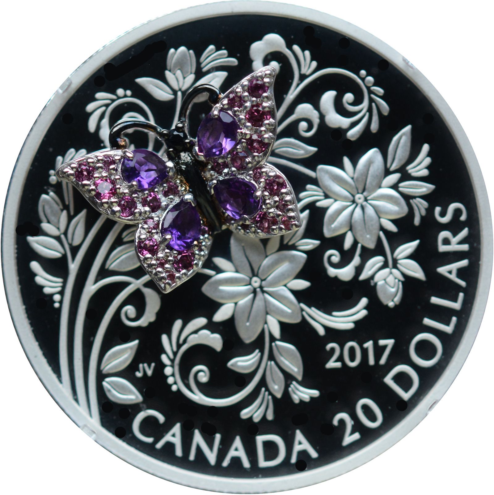 1 oz. Pure Silver Coloured Coin - Bejeweled Bugs: Butterfly - Mintage: 4,000 (2017)